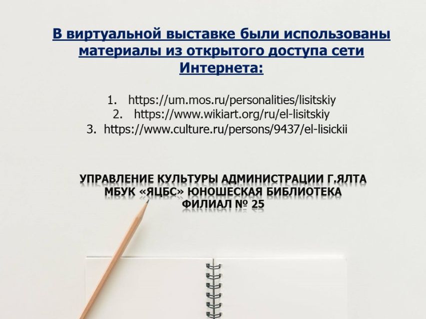 Юношеская библиотека-филиал № 25 подготовила для читателей виртуальную выставку "Первое имя Русского авангарда", посвящённую Элю Лисицкому, русскому художнику-графику, авангардисту, не просто художнику из 1920-х годов, а фигуре, чьи идеи о синтезе искусства, технологии и социальных преобразований остаются удивительно актуальными.