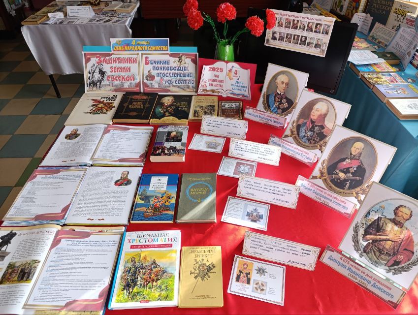В рамках Года защитника Отечества и ко Дню народного единства библиотека-филиал № 26 для детей (пгт. Гурзуф) представила юным читателям литературно-историческую выставку "Защитники земли русской", посвящённую прославленным русским полководцам, внёсшим неоценимый вклад в защиту Отечества. Выставка для школьников - мост в прошлое, где живут образы полководцев, ковавших славу и щит Отечества!