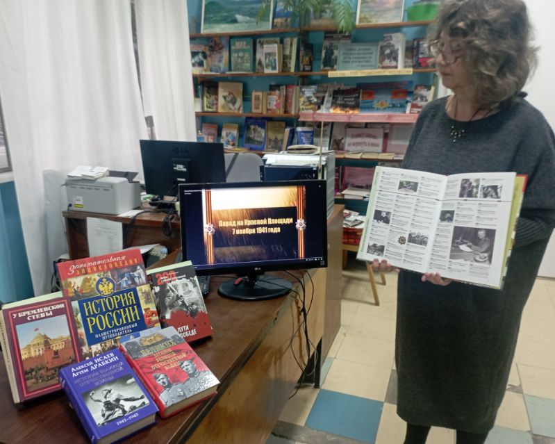 В библиотеке-филиале № 7 (пгт. Гурзуф) провели час истории "Выжить и победить", посвящённый историческому параду на Красной Площади в 1941 году. Участникам мероприятия показали видеофильм "Парад на Красной Площади 7 ноября 1941 года" из Российского государственного архива кинофотодокументов, вместе обсудили исторический факт.
