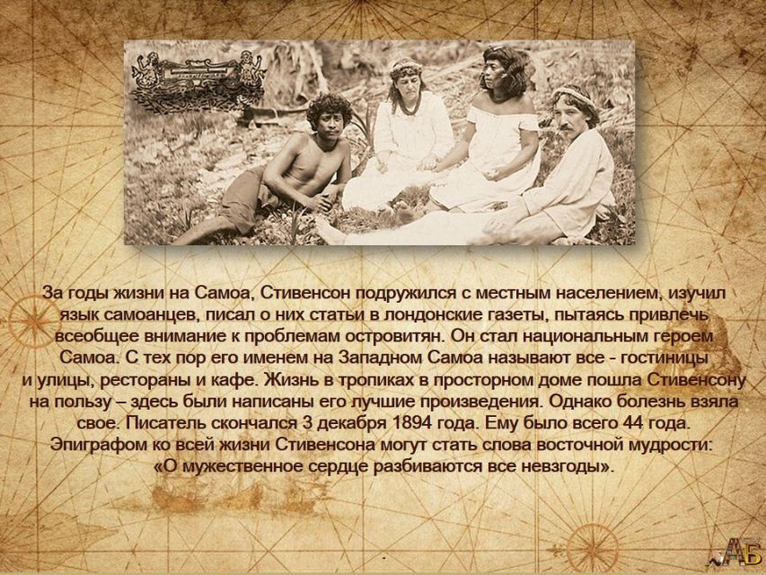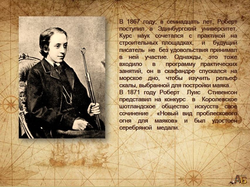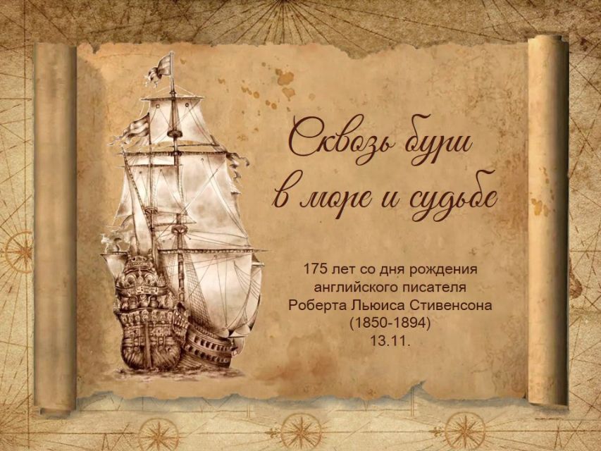 К 175-летию со дня рождения Роберта Стивенсона абонементный отдел Центральной городской библиотеки имени А.П. Чехова подготовил виртуальную презентацию "Сквозь бури в море и судьбе" с интересными фактами о жизни и творчестве шотландского писателя, поэта и путешественника, оставившего неизгладимый след в мировой литературе.