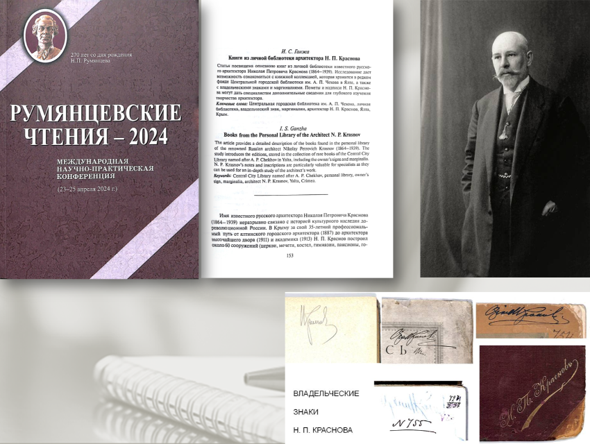 В сборник вошла статья «Книги из личной библиотеки архитектора Н.П. Краснова» И.С. Ганжи, заведующей отделом редкой книги ЦГБ им. А.П. Чехова.