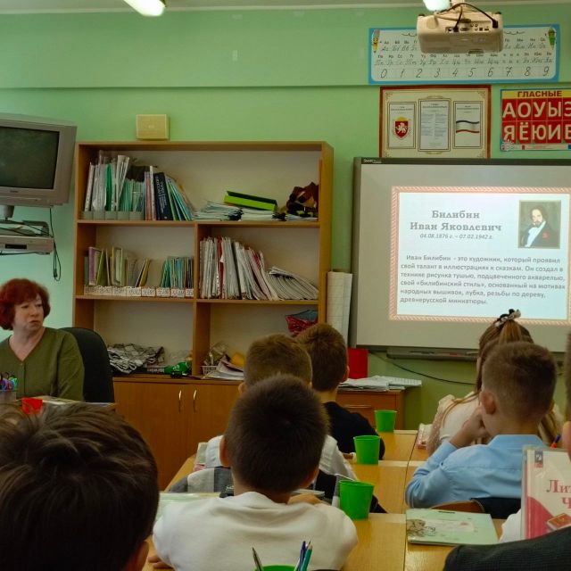 Библиотекарь филиала № 2 имени Н.З.Бирюкова провела беседу "Красочный мир Ивана Билибина" для учащихся 3 класса средней школы № 2 "Школа будущего" о творчестве выдающегося художника, мастера книжной графики. Ребята посмотрели красочные иллюстрации художника к сказкам А.С. Пушкина "Сказка о царе Салтане" и Г.Х. Андерсена "Русалочка".