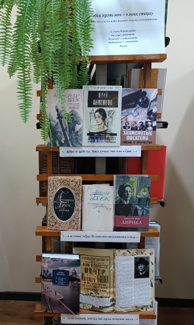 В библиотеке-филиале № 9 (пгт. Кореиз) к 145-летию со дня рождения Александра Блока, великого поэта, публициста, драматурга, переводчика, классика русской литературы XX столетия, оформлена книжная выставка "Вся жизнь моя - в моих стихах". На выставке представлены произведения автора, изданные в разные годы: сборники стихов, поэмы, а также воспоминания современников о поэте.