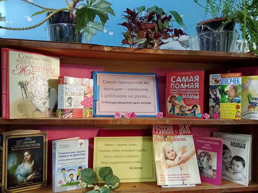 В библиотеке-филиале № 7 (пгт. Гурзуф) оформили книжную выставку "Самая прекрасная из женщин" ко Дню матери, который отмечается в последнее воскресенье ноября с 1998 года, занимает особое место среди праздников в России и становится всё популярнее в российском обществе.