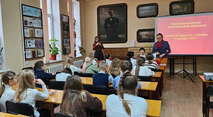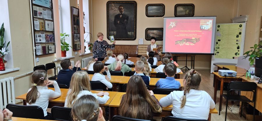 В рамках Республиканского читательского марафона "Получи радость чтения" Детская городская библиотека организовала для учащихся начальных классов школы-лицея № 9 громкие чтения популярной повести детского писателя Валентина Катаева "Сын полка", приуроченные к Году защитника Отечества и 80-летию Великой Победы.