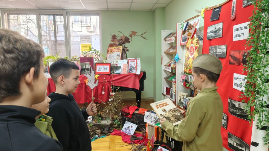 Мероприятие началось с просмотра книжной инсталляции, специально оформленной к 80-летию Победы.