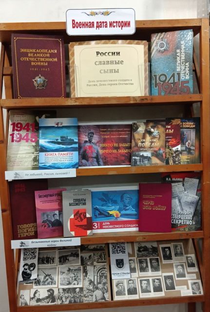 Среди многочисленных памятных дат российского календаря есть одна, исполненная особой, тихой скорби и безмерного уважения. Это - День Неизвестного Солдата, который ежегодно отмечается в России 3 декабря - день памяти о тех, кто отдал жизнь за Отечество, но чьи имена остались неизвестны. Юношеская библиотека-филиал № 25 подготовила для читателей выставку "России славные сыны".