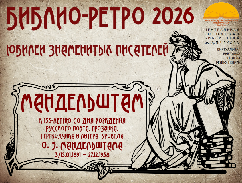К 135-летию со дня рождения русского поэта, эссеиста, переводчика и литературоведа Осипа Эмильевича Мандельштама отдел редкой книги Центральной городской библиотеки имени А.П. Чехова подготовил виртуальную выставку из цикла "Библио-ретро". С выставкой можно ознакомиться также на странице "Ялтинская централизованная библиотечная система" социальной сети "ВКонтакте": https://vk.com/public217063456