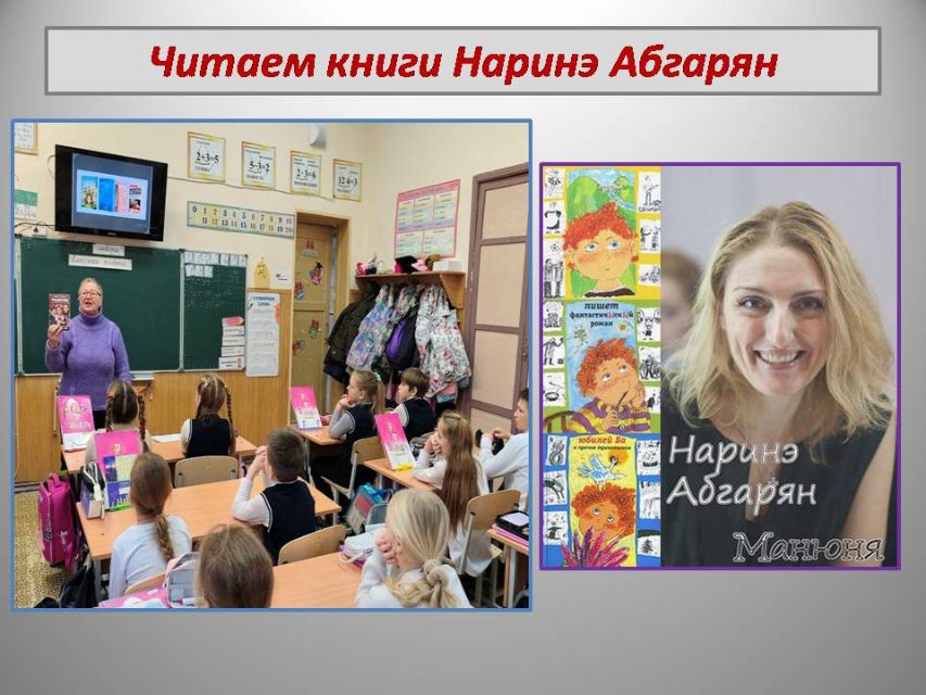 Для второклассников средней школы № 4 библиотека-филиал № 13 провела обзор книг современной писательницы-юбиляра Наринэ Абгарян, автора очень популярных среди читателей книг, лауреата Российской литературной премии имени Александра Грина за вклад в развитие отечественной литературы и премии "Ясная поляна" в номинации "ХХI век".