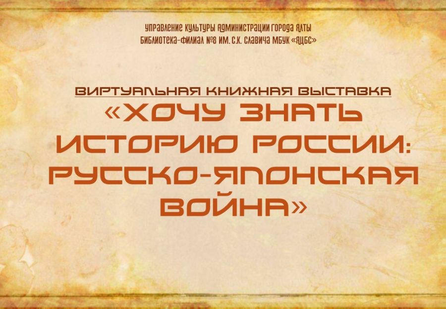 Библиотека-филиал № 8 имени С.К.Славича приглашает на виртуальную книжную выставку "Хочу знать историю России: Русско-японская война", посвящённую ключевым эпизодам противостояния России и Японии, которая позволит глубже погрузиться в историю и изучить дальневосточную политику нашей страны в XX веке через призму выдающихся книг.