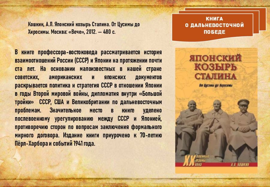 А.Л. Кошкин «Японский козырь Сталина. От Цусимы до Хиросимы».