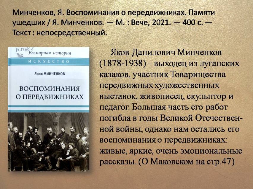 Талантливый художник, глубоко сочувствующий человеческому горю и радостям, он создал много картин, повествующих о судьбе простых людей.