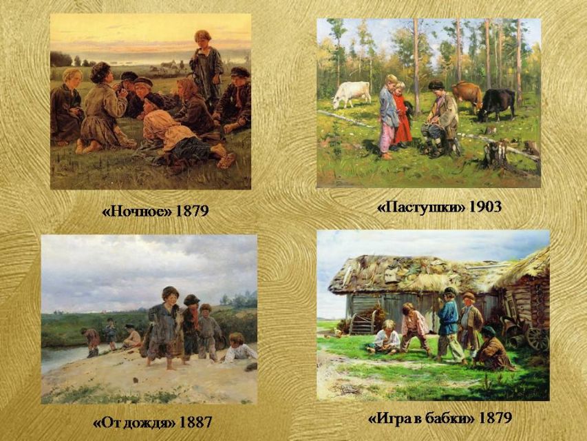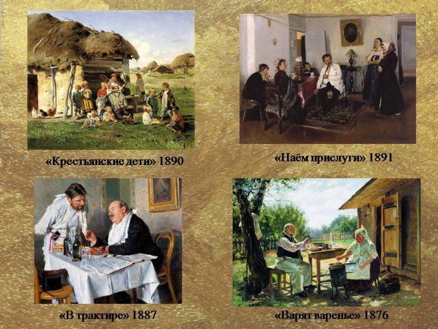 Повседневные сцены - любимая тема художника. В своих полотнах В.Е. Маковский показал жизнь почти всех социальных групп и сословий России. Его живопись посвящена скромным обывателям, людям «разного чина и звания».