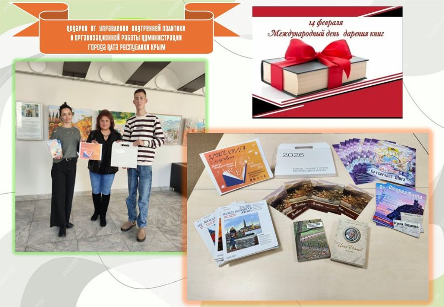 Благодарные читатели выражают признательность Управлению внутренней политики и организационной работы Администрации города Ялта в лице заместителя начальника отдела Елены Паюк, поэту Людмиле Кулик-Кураковой за подаренную библиотеке авторскую книгу, заведующей Детской городской библиотеки Ларисе Павленко за полезную литературу для любознательных детей, Ирине Алексеевой - председателю Ялтинской организации Русская общины Крыма, руководителю Ялтинского отделения МОО «Международная академия детско-юношеского туризма и краеведения» (г. Москва) Елене Рудаковой за историческую и духовную литературу, участникам татарской общины «Акчура» с председателем общины Расимой Ступаковой, воспитателю детского сада Анастасии Кравчук - активным и сознательным людям, кто делится своими книжными богатствами и рады встрече с миром добрых и увлекательных книг!