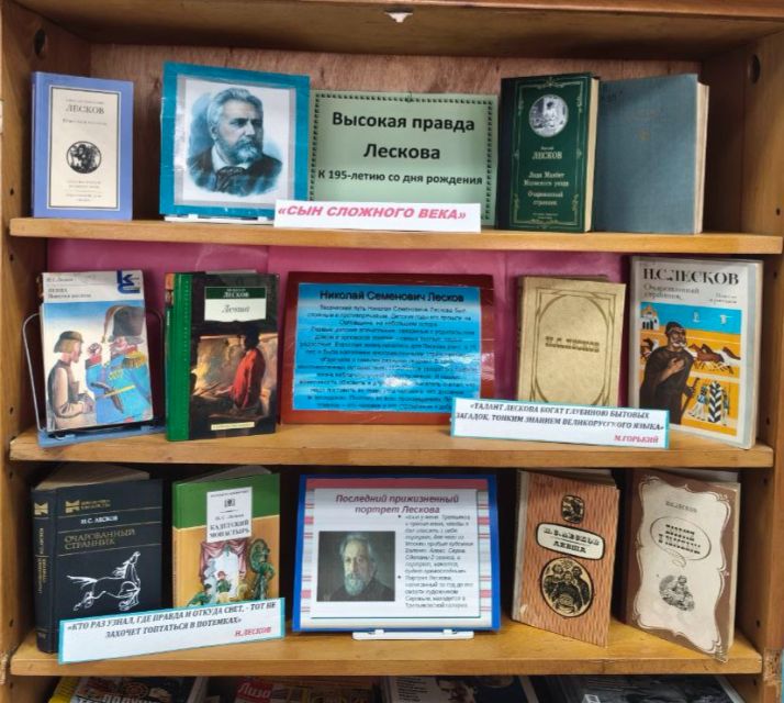 В библиотеке-филиале № 7 (пгт. Гурзуф) для читателей оформлена книжная выставка "Высокая правда Лескова" к 195-летию со дня рождения Николая Семёновича Лескова, русского писателя, прозаика, публициста, драматурга. На выставке представлены самые известные произведения, в которых отразился большой запас наблюдений автора над русской жизнью.