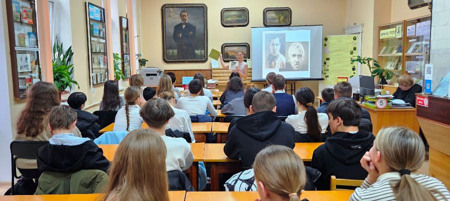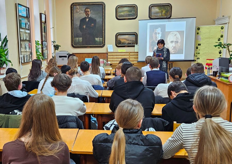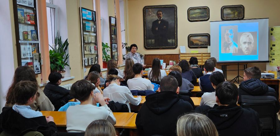 Гимназисты узнали о жизненном и творческом пути поэтов-фронтовиков Константина Симонова и Мусы Джалиля, услышали их стихотворения, познакомились с книгами из фонда библиотеки, рассказывающими о корреспондентах Великой Отечественной войны.
