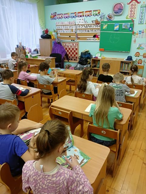 Чтобы пробудить интерес к школе, библиотекарь продекламировала воспитанникам подготовительной группы весёлое стихотворение Агнии Барто «Первый урок» - о том, как волнуется и радуется первоклассница, впервые переступающая порог класса.