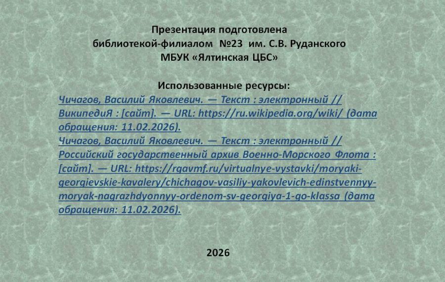 Библиотека-филиал № 23 имени С.В.Руданского подготовила виртуальный биографический обзор "Василий Чичагов" к 300-летию со дня рождения Василия Яковлевича Чичагова, русского флотоводца екатерининской эпохи, адмирала, мореплавателя, первопроходца Северных водных путей.