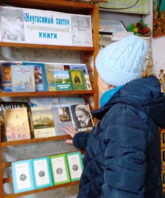 14 марта отмечается День православной книги. Библиотека-филиал № 24 к этой дате проводит беседу у тематической полки "Неугасимый светоч православной книги". Читателям представлена литература о христианстве, разные виды православных изданий: церковно-служебные сборники молитв, жития святых, книги, написанные православными священниками.
