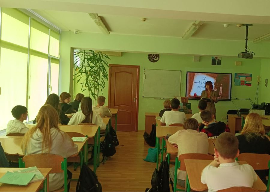 К Международному дню поэзии в средней школе № 2 (Школа Будущего) Юношеская библиотека-филиал № 25 провела читательский час "И пробуждается поэзия во мне…". Учащиеся познакомились с основами стихосложения на примерах русских классиков, читали стихи и пробовали писать стихи собственного сочинения, используя новые знания - приобщились к литературе посредством творчества!