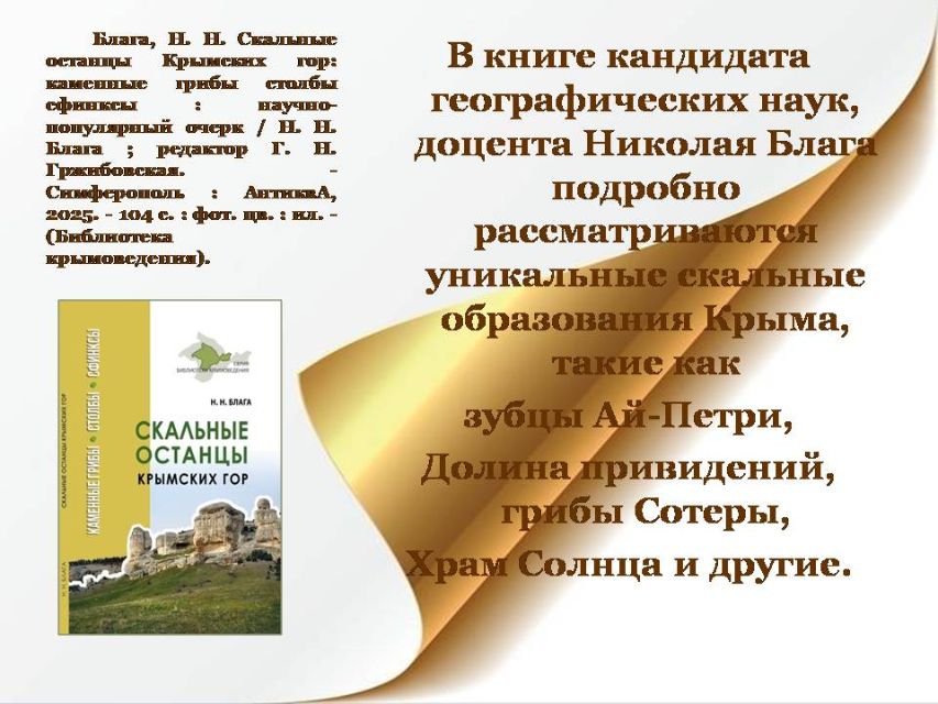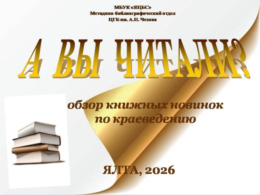 Краеведение играет важную роль в формировании представлений о родном крае, помогает сохранять историческую память, способствует развитию интереса к особенностям культуры и природы. Методико-библиографический отдел Центральной городской библиотеки имени А.П. Чехова подготовил обзор новых книг о Крыме. Ждём вас в библиотеке и приятного чтения!