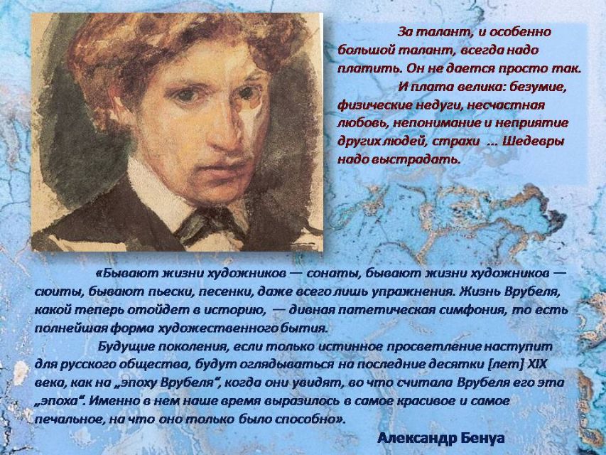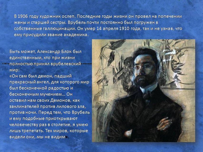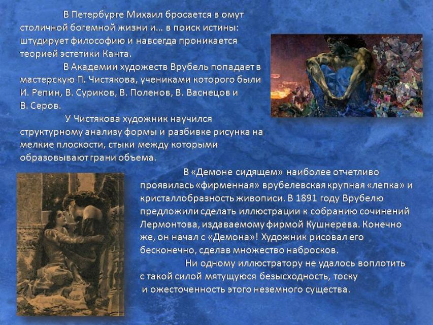 М. Врубель - один из столпов русского модерна, гений, проявивший себя в разных видах изобразительного искусства.