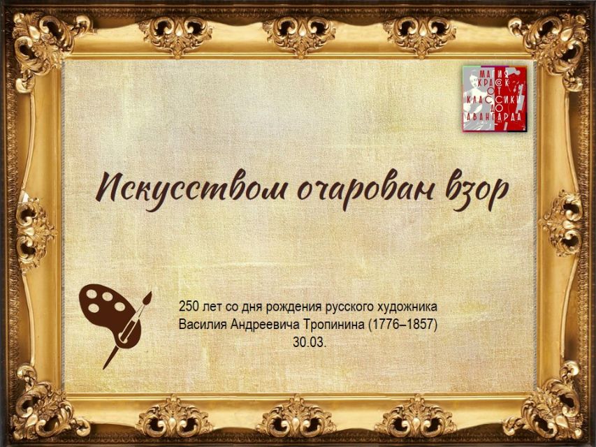 К 250-летнему юбилею выдающегося русского художника Василия Андреевича Тропинина в рамках цикла мероприятий "Магия красок: от классики до авангарда" абонементный отдел Центральной городской библиотеки имени А.П. Чехова подготовил виртуальный информационный обзор "Искусством очарован взор" о жизненном и творческом пути художника.