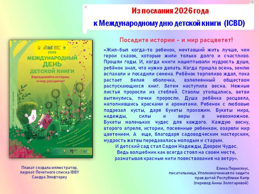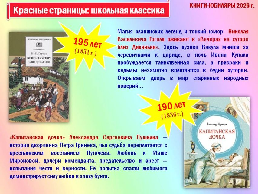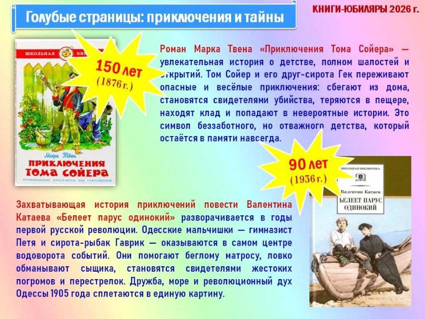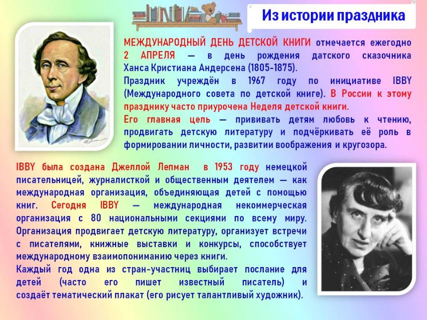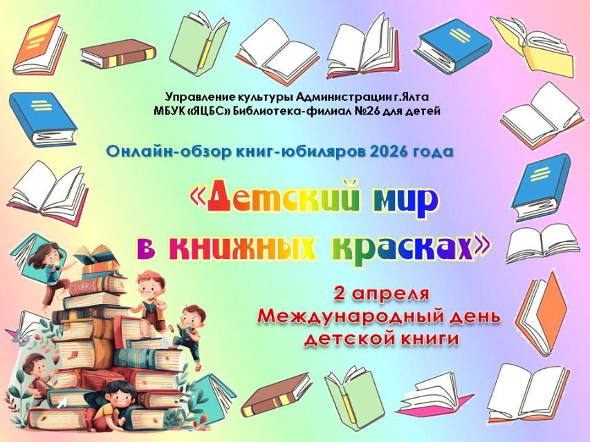 Библиотека-филиал № 26 для детей (пгт. Гурзуф) подготовила для юных читателей виртуальный литературный обзор книг-юбиляров 2026 года "Детский мир в книжных красках" в рамках Международного дня детской книги, который ежегодно отмечается 2 апреля, в день рождения датского сказочника Ганса Христиана Андерсена.