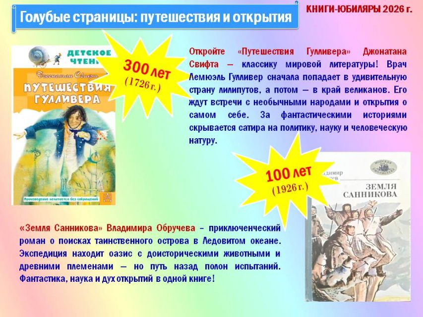 Многие книги отмечают в 2026 году круглые даты - от столетних юбилеев до трёхвековых вех.