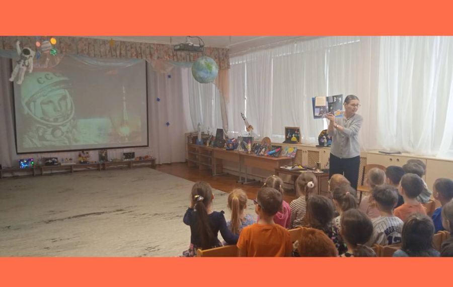 Ко Дню космонавтики библиотека-филиал № 23 подготовила для дошкольников детского сада № 7 "Огонёк" презентацию, которая познакомила детей с Юрием Гагариным, первым космонавтом Земли, совершившим полёт в космос. Детей привлекли яркие книги - энциклопедии, посвящённые звёздному небу и планетам. Ребята сами подготовили поделки на космическую тему!