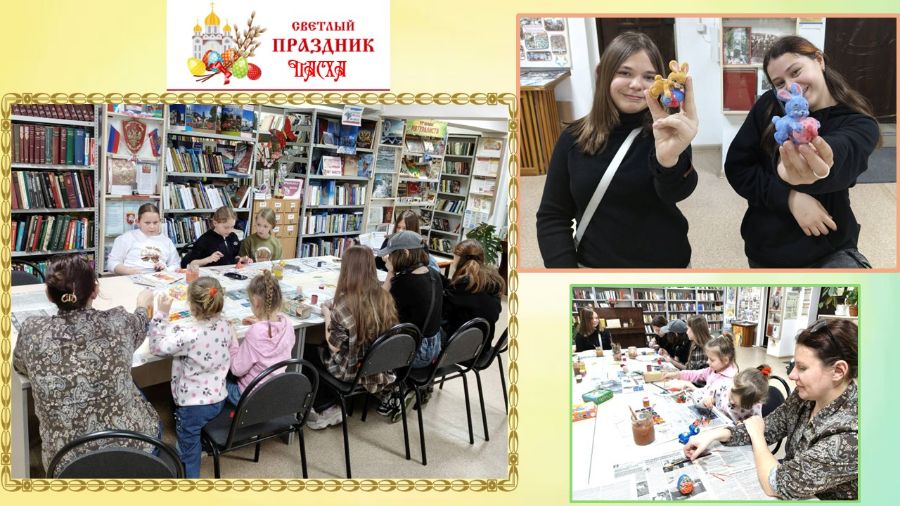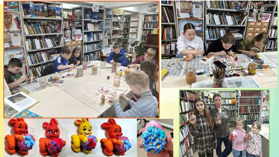 Творческие мастер-классы, посвящённые светлому празднику Пасхи, провели в библиотеке-филиале № 8 имени С.К. Славича в рамках пасхальной недели. Взрослые и дети вместе обсуждали обычаи, делились идеями, помогали друг другу - и в результате получали не только красивые поделки, но и заряд бодрости, хорошее настроение, ощущение причастности к чему-то большому и важному!