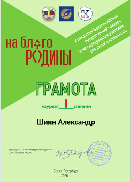Талантливые читатели библиотеки-филиала № 8 имени С.К. Славича Александр Шиян и Александра Алдушина - победители престижного Х Всероссийского конкурса с международным участием "На благо Родины"! Творческие работы были отмечены грамотами лауреатов I степени, а библиотекарь Ольга Крымская получила благодарность. Молодёжь продемонстрировала высокий уровень литературного мастерства!