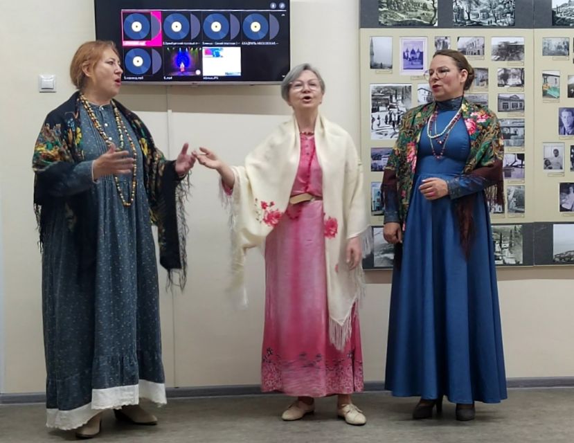 Открылась встреча в библиотеке многоголосьем старинных казачьих песен в исполнении вокальной группы «Шальной транзит» в составе Натальи Комаровой, Ники и Ариоллы Милодан.