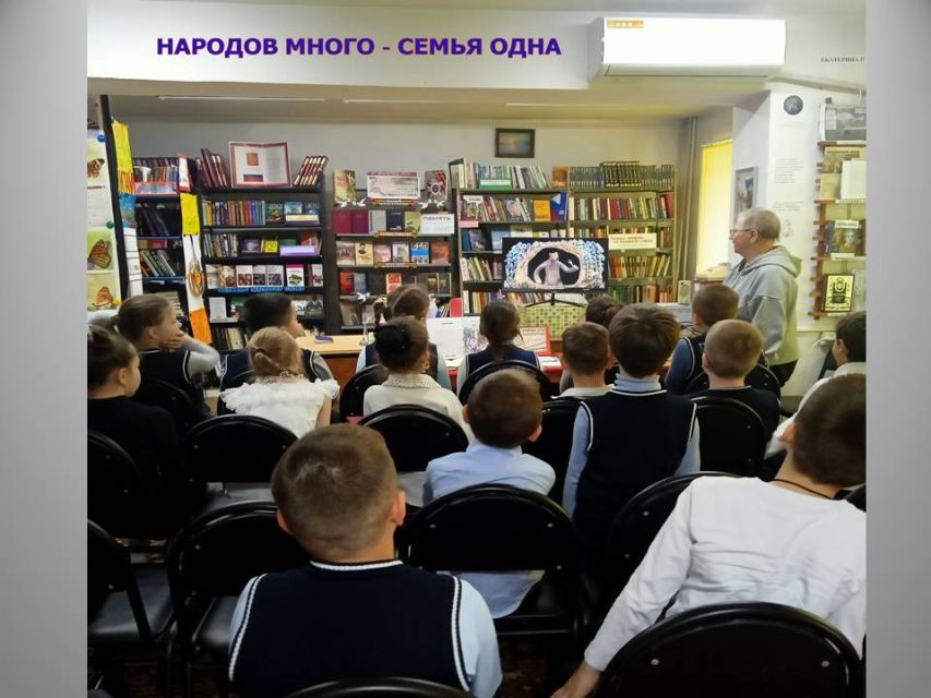 2026 - Год единства народов России, объявленный Президентом В.В.Путиным. В библиотеке-филиале № 13 провели мероприятие для учащихся младших классов "Народов много - страна одна" и познакомили ребят с историей народов, проживающих на территории России. Школьники с интересом посмотрели серии занимательной видеоэнциклопедии "Мульти - Россия - народы".
